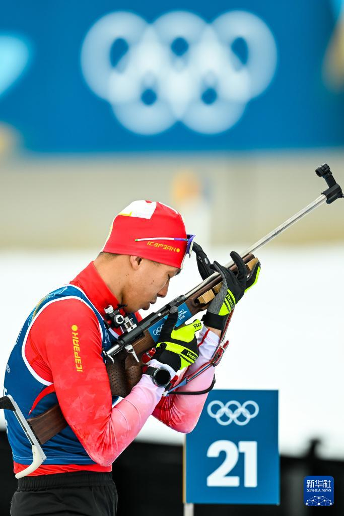 2月6日,中国冬季两项队队员闫星元在训练中。