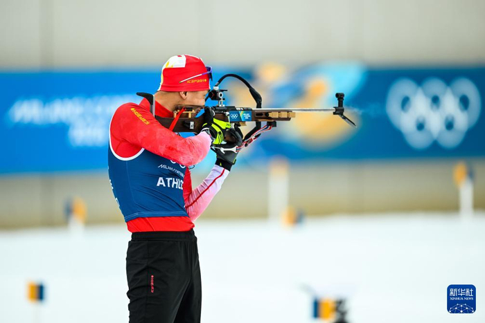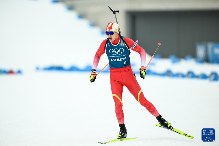 2月6日,中国冬季两项队队员闫星元在训练中。